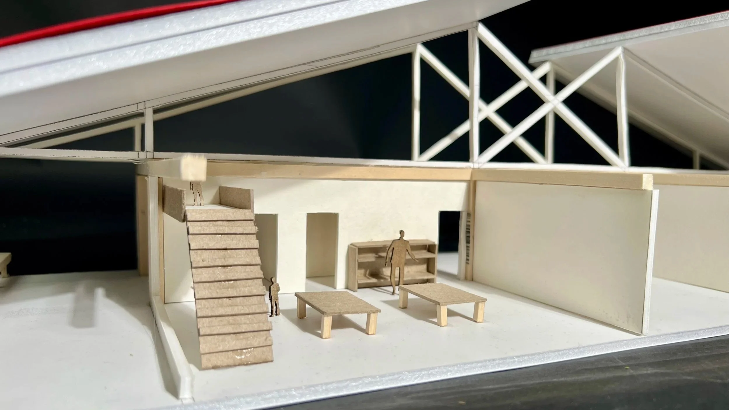 Inspired by Southern schoolhouses, the kindergarten organizes classrooms along a continuous wraparound porch, giving each classroom direct outdoor access. Circulation is kept simple and legible, allowing children to move intuitively through the building in line with Montessori learning principles or independent exploration. Varying scales; from larger, shared spaces to more intimate, child sized-spaces; create an environment where children can take ownership of their surroundings.
